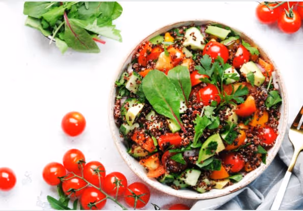 Vegetables examples: broccoli, green peas, spinach, kale, tomatoes, carrots, cucumbers, etc.